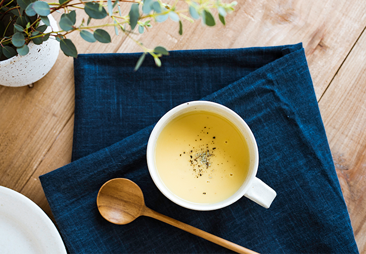 もちろんコーヒーや紅茶以外にも、いろいろな用途で楽しんでいただけます。口が広いデザインなので、スープやポタージュなんかも相性ぴったり。カップに入れてみるだけで、お店のような盛り付けを楽しんでいただけます!