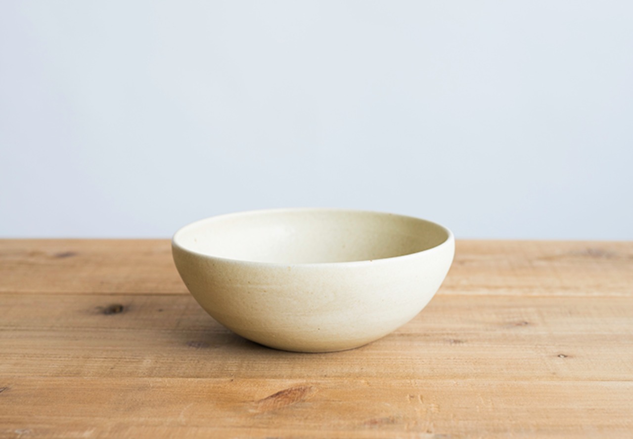 マットなしっとりとした手触りが心地いい、生成り。飾らないシンプルさが、どんな食卓のシーンにも馴染んで使いやすいですね。